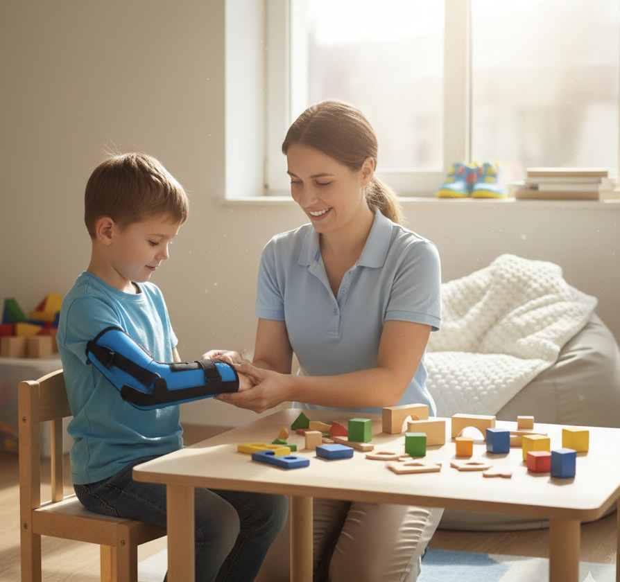 Pohodlie a Materiál: Aj napriek pevnosti by mala ortéza na ruku minimalizovať tlakové body a byť čo najpohodlnejšia. Materiály musia byť dostatočne pevné, ale zároveň šetrné k detskej pokožke.