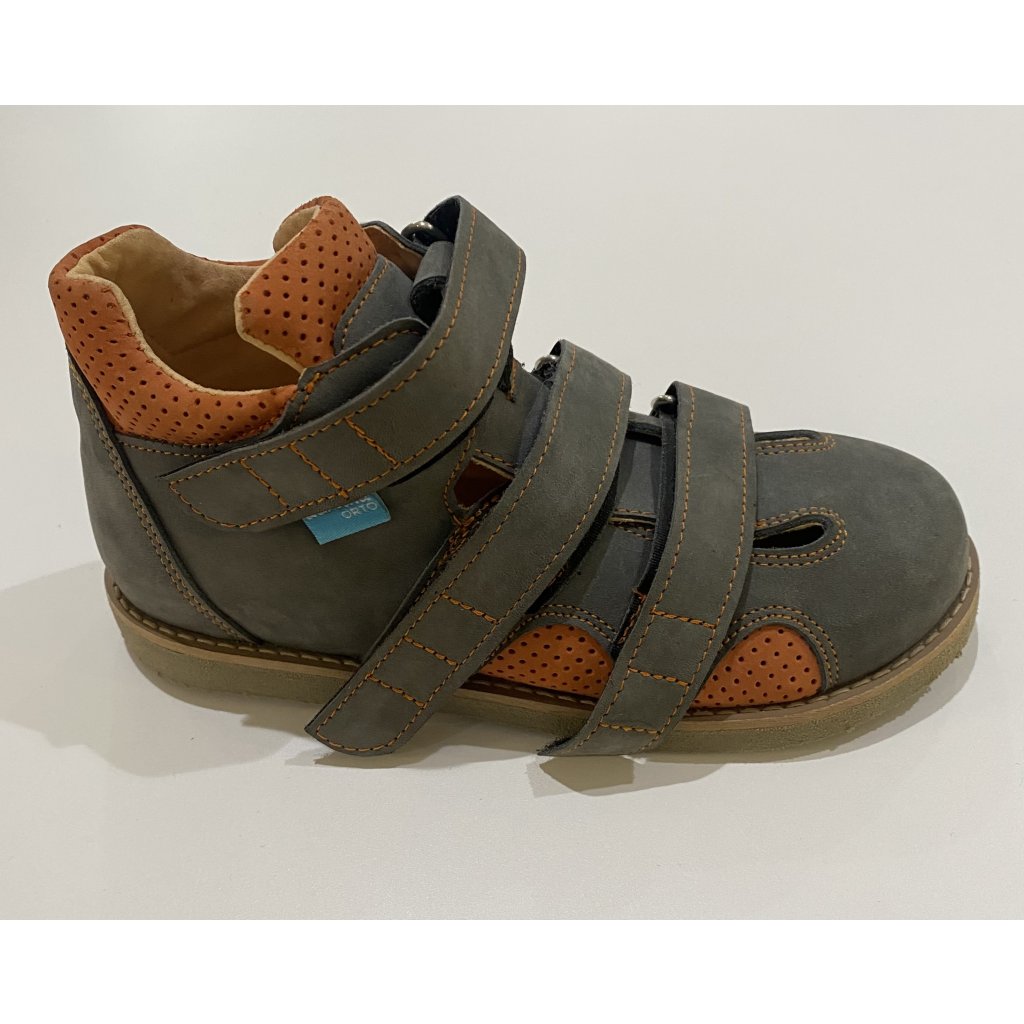 Ľahké a pružné detské sandále s uzatvorenou špičkou a spevneným opätkom na stabilizáciu vybočenej päty. Obuv sa dodáva s rovnou vnútornou stielkou pre použitie ortopedických vložiek ak je to potrebné. Profylaktická obuv.