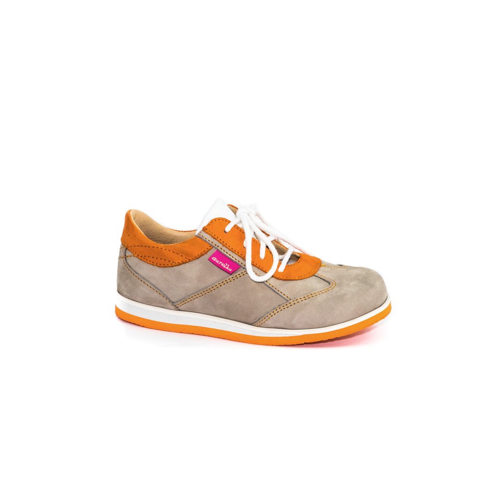 Model Aurelka Elbut 1030 sú módne topánky športového strihu. Osvedčia sa pri akejkoľvek fyzickej aktivite, pričom zabezpečia pohodlie a bezpečnosť vášho dieťaťa. Majú spevnenú pätu a pružnú protišmykovú podrážku, vďaka čomu ich priamo nevystavujú zraneniu. Kvalitný materiál umožňuje nohe dýchať. Zabezpečujú pohodlie pri používaní a správny vývoj chodidiel.